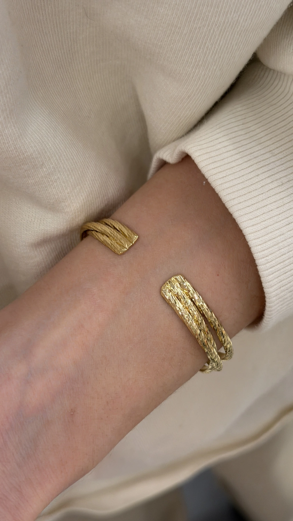 Gold Sarmal Detay Kalın Kelepçe Bileklik