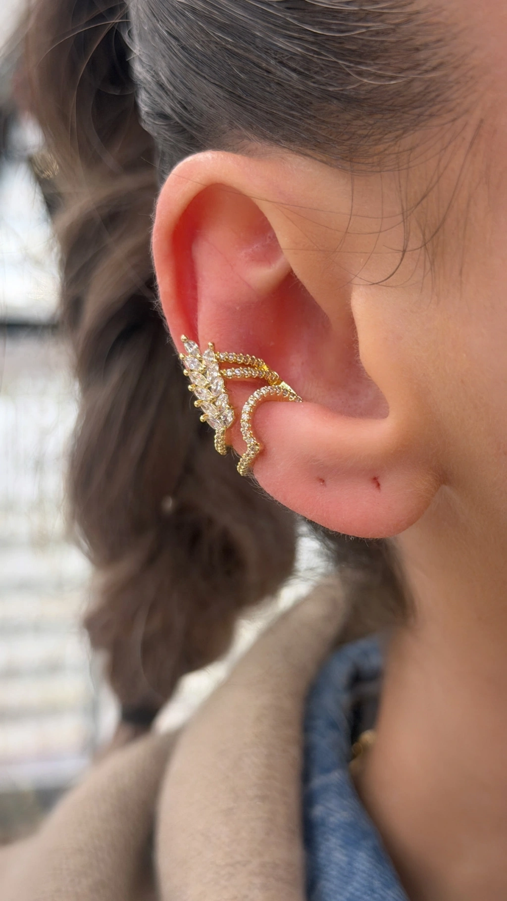 Dalga Detay Kalın Kıkırdak Küpe