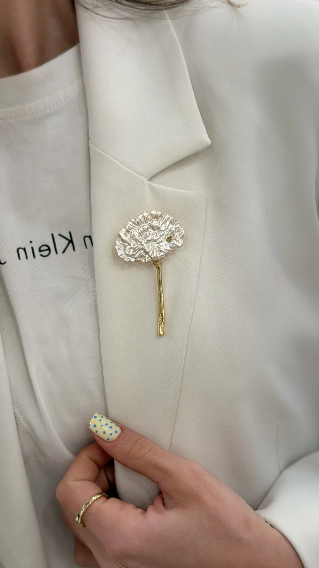 BEYAZ SEDEF DETAY ÇİÇEK BROŞ