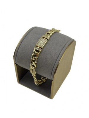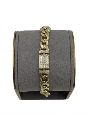 Özel Seri Plaka Bağlantılı Taş Detay Bileklik(19cm)