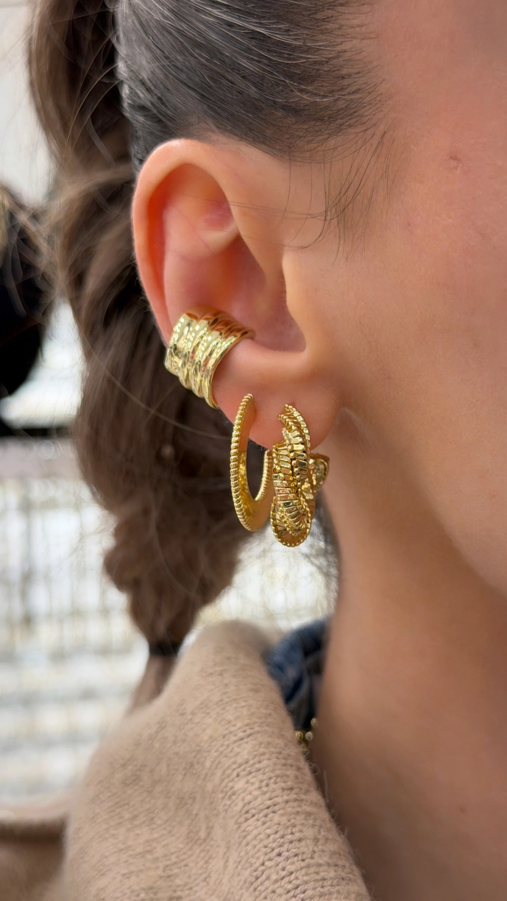2’li Görünüm Metal Kıkırdak Küpe