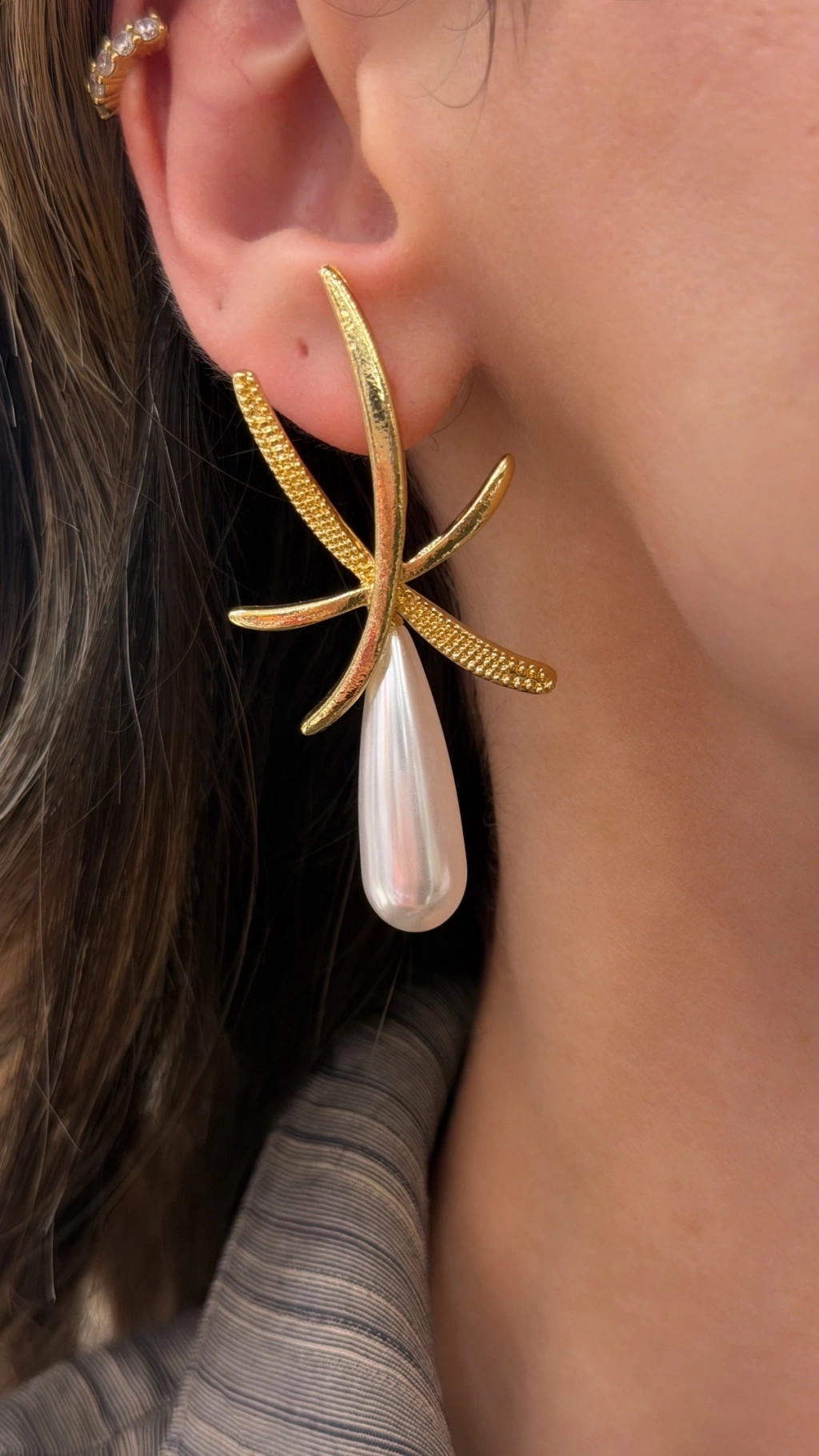 Dövme Plaka İnci Sallantılı Büyük Küpe