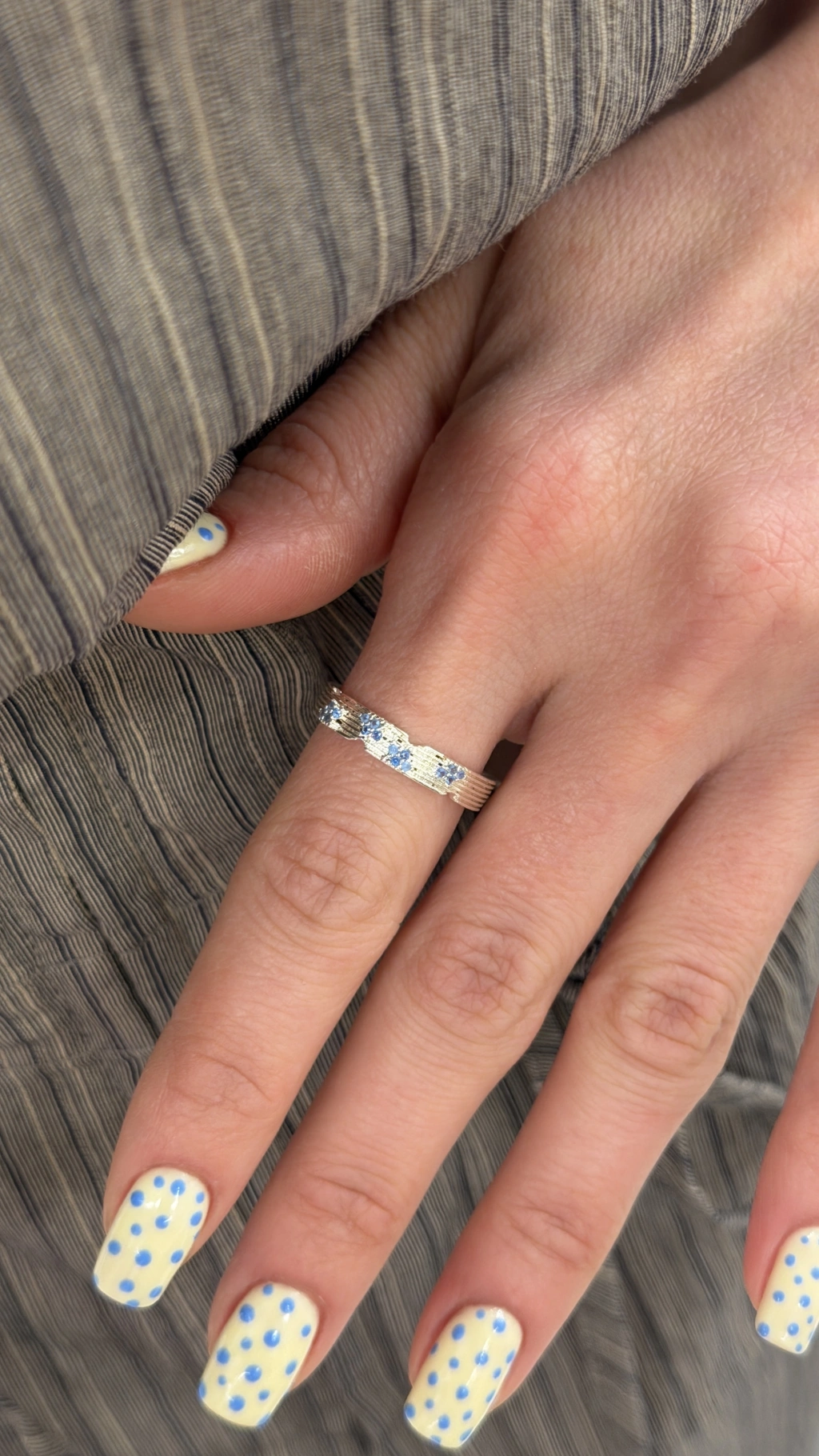 Gümüş Sıralı Mavi Taş Ayarlanabilir Yüzük