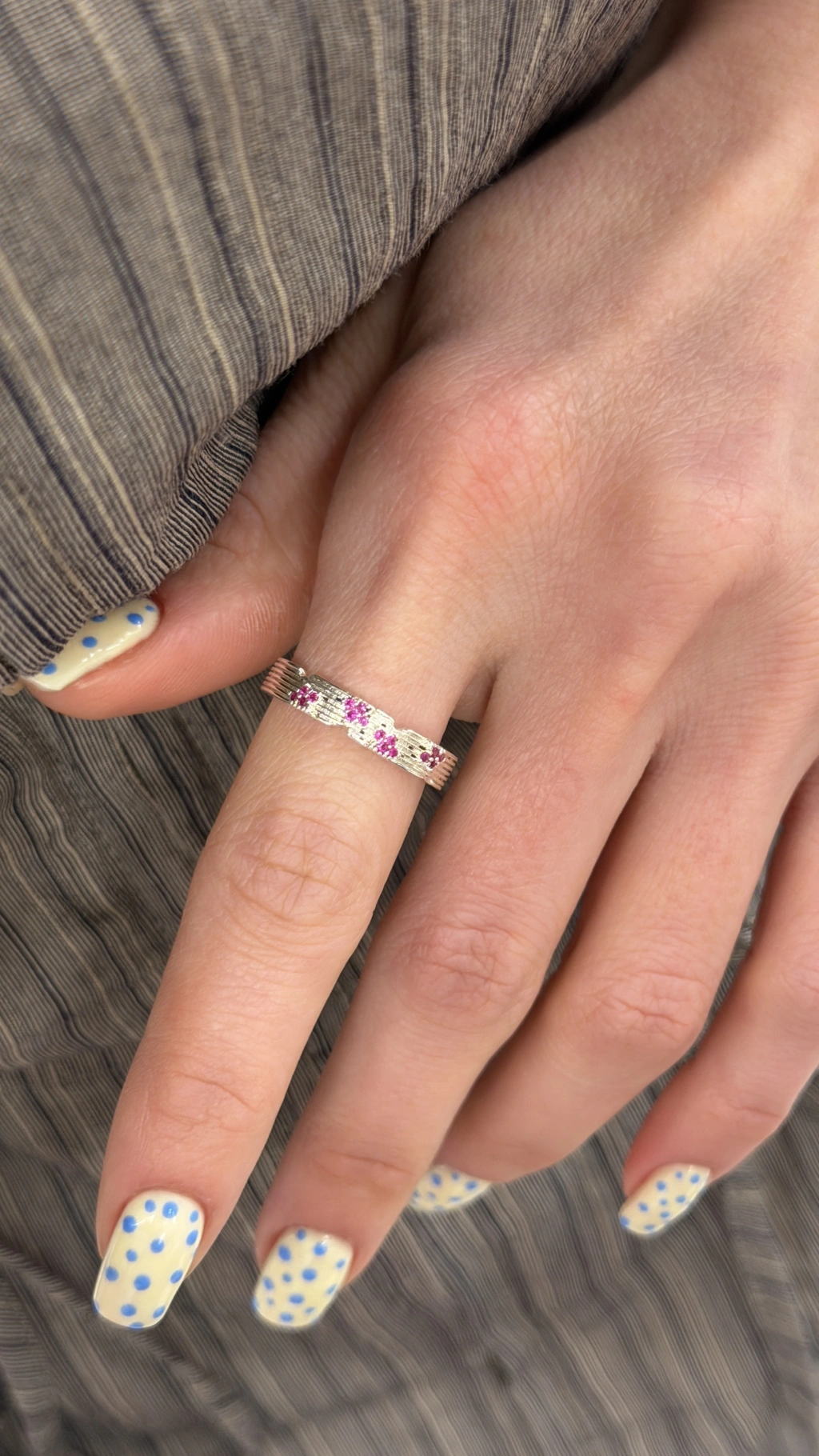 Gümüş Sıralı Pembe Taş Ayarlanabilir Yüzük