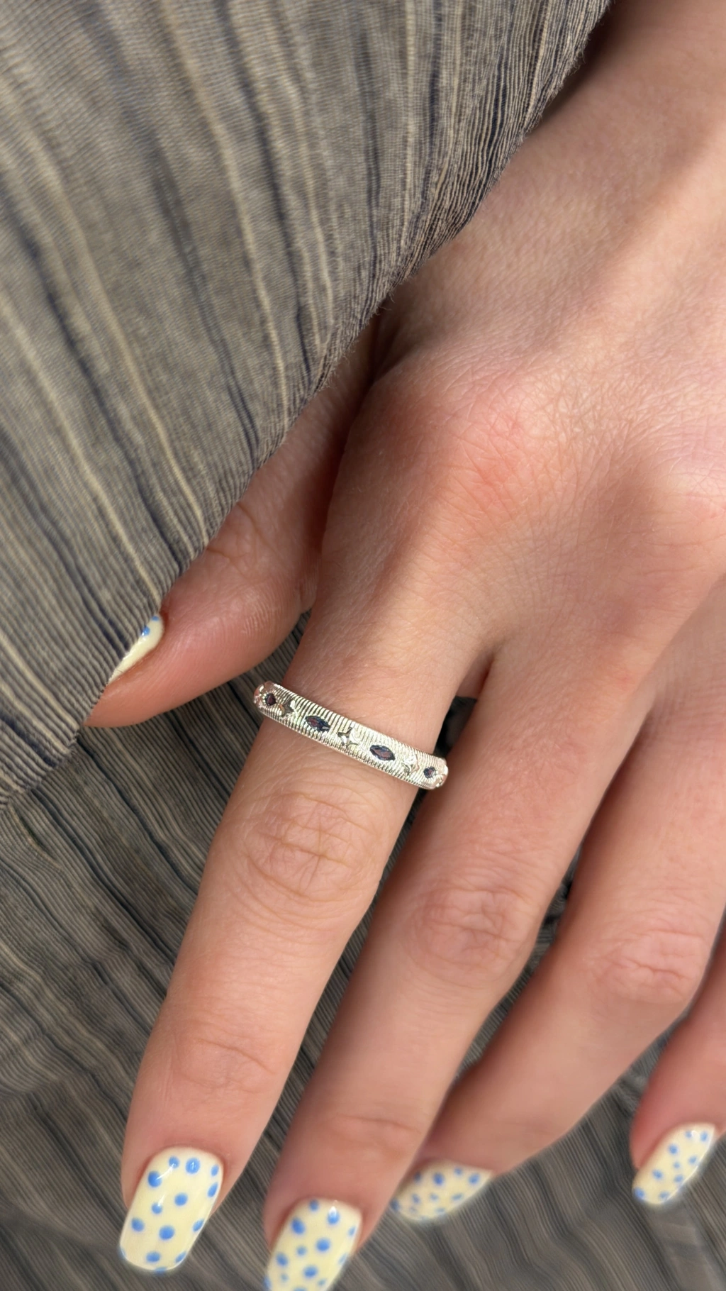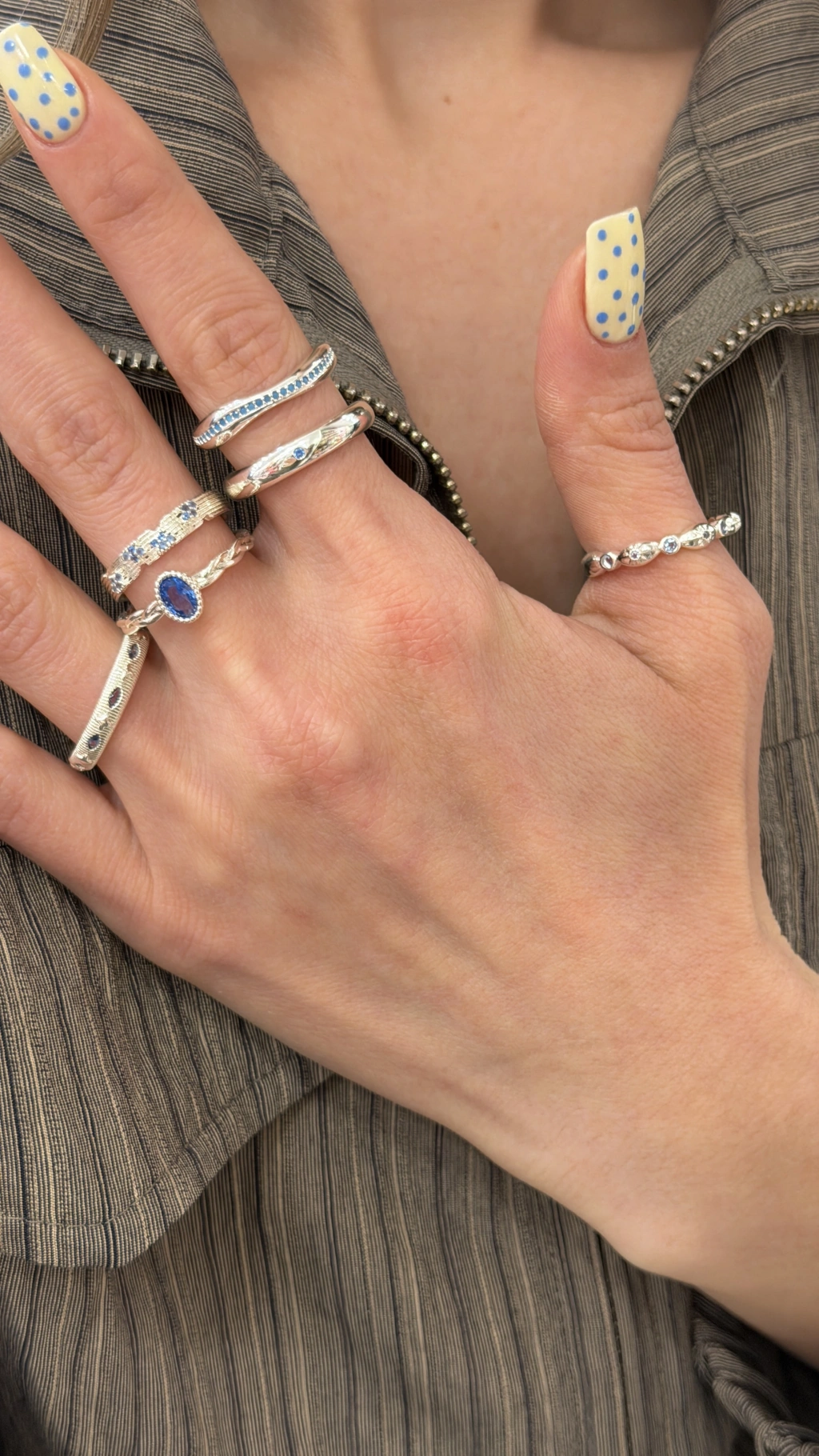Gümüş Sıralı Mavi Taş Ayarlanabilir Yüzük
