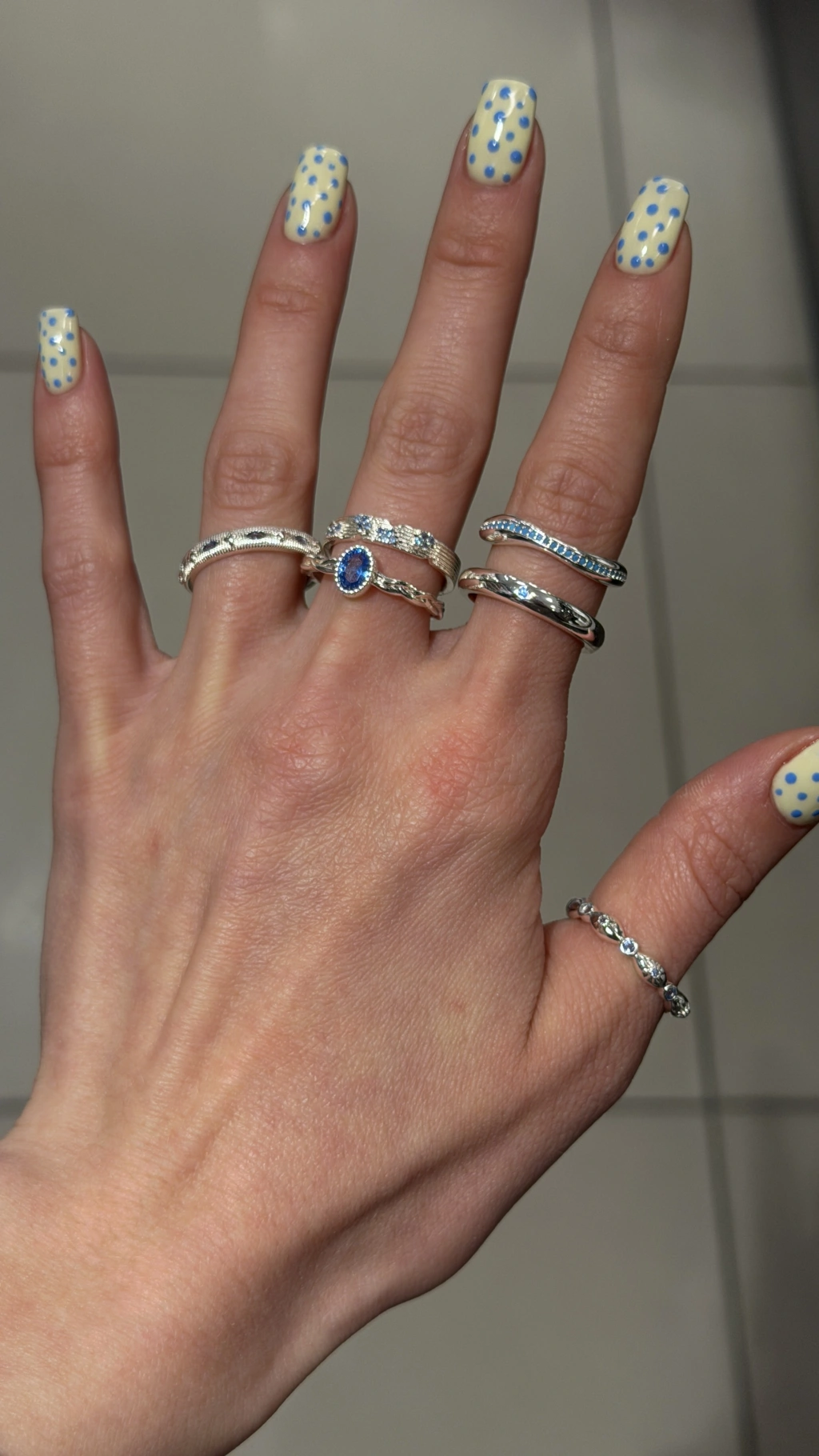 Gümüş Mavi Küçük Taş Detay Ayarlanabilir Yüzük