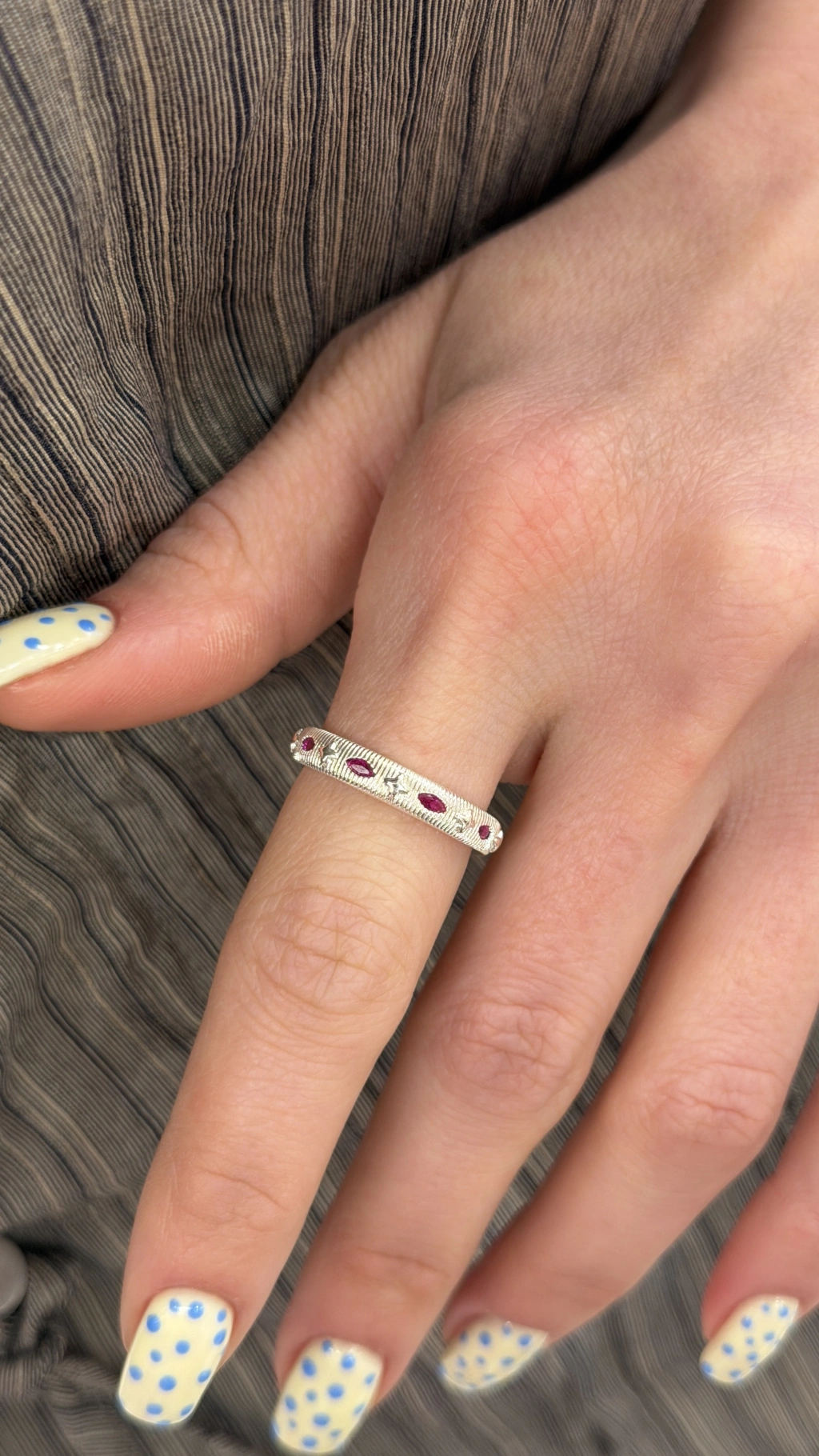 Gümüş Sıralı Mavi Taş Ayarlanabilir Yüzük