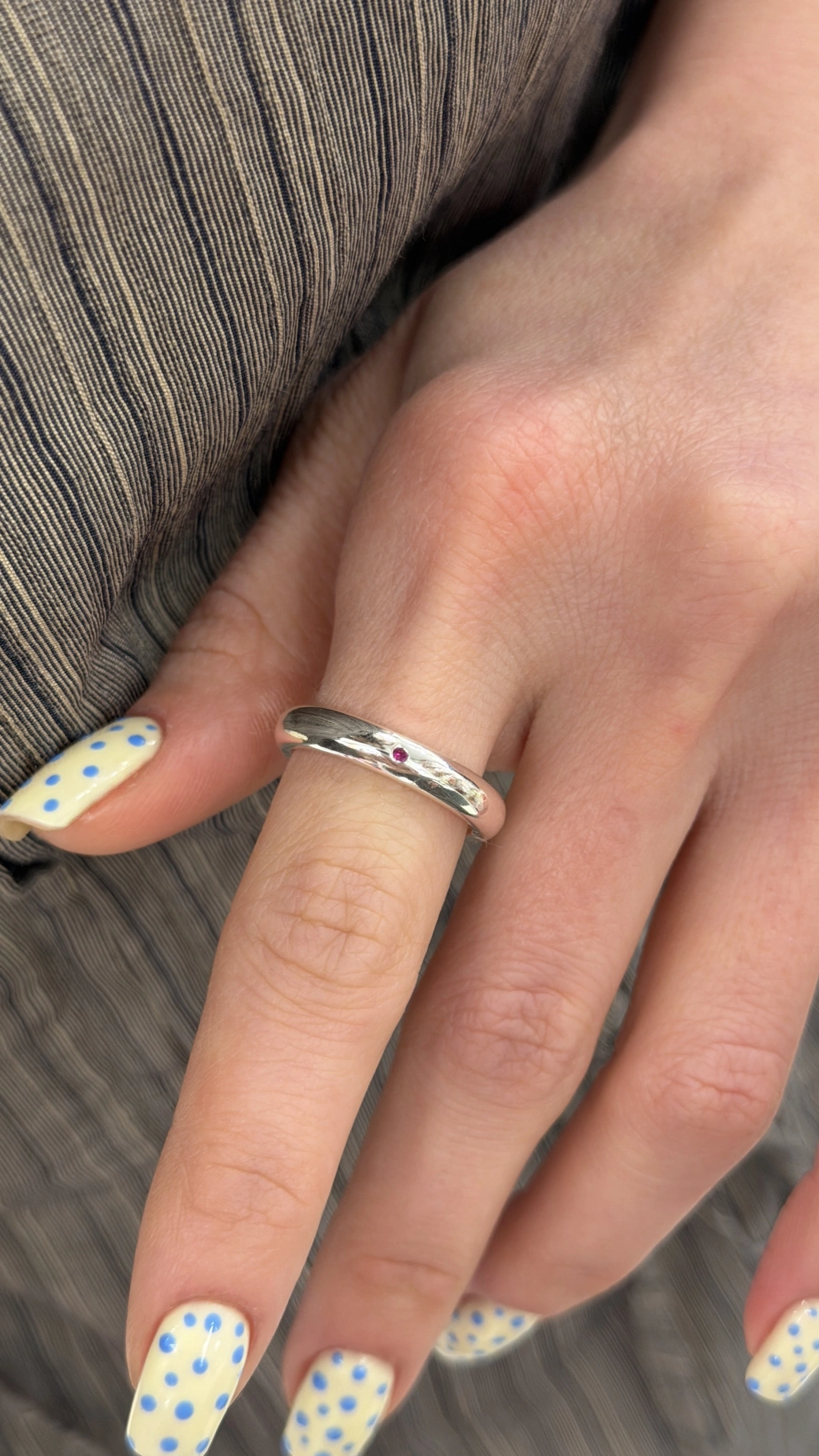 Gümüş Bombeli Pembe Taş Detay Ayarlanabilir Yüzük