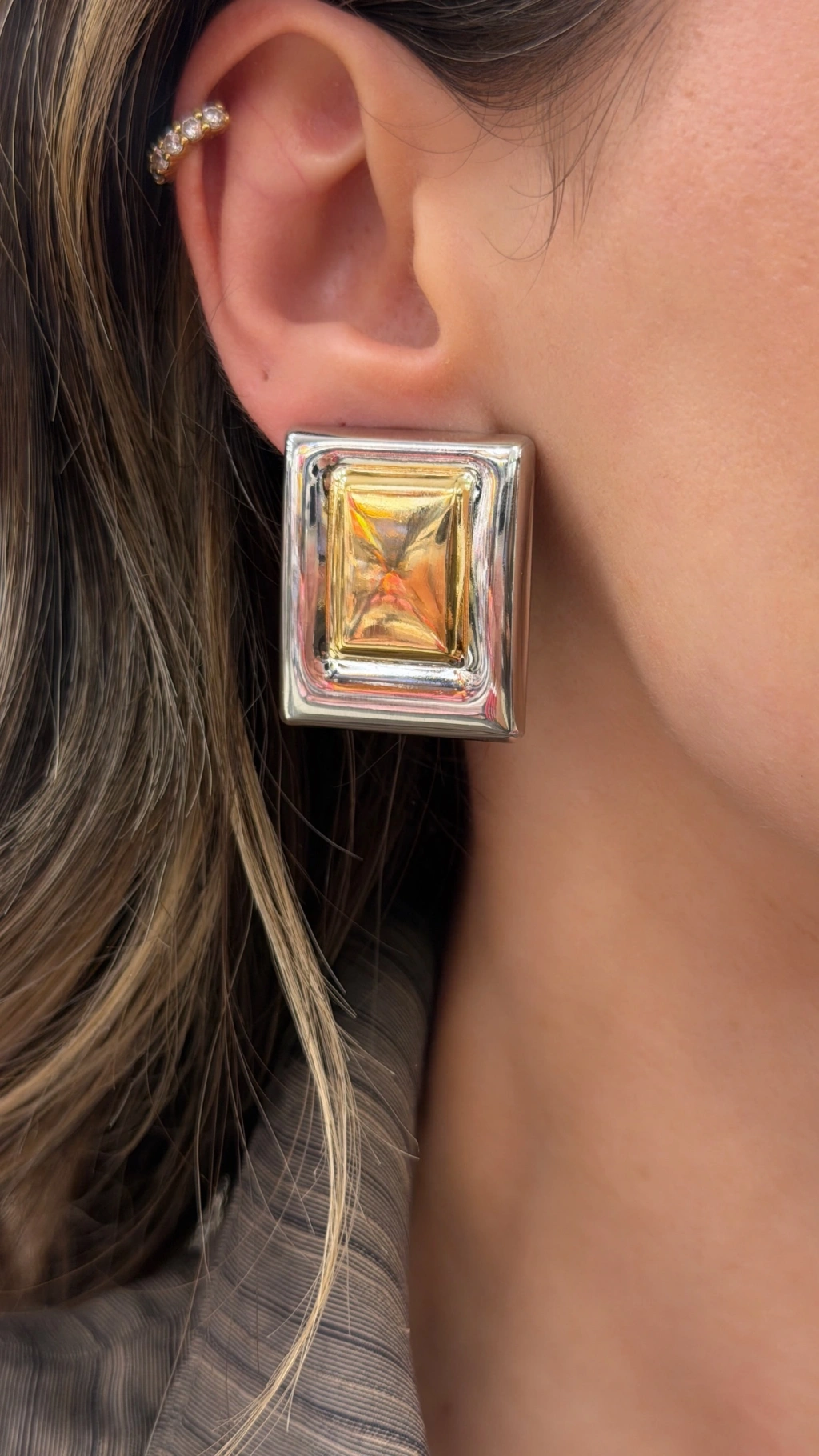 Kare Taşlı Büyük Metal Küpe
