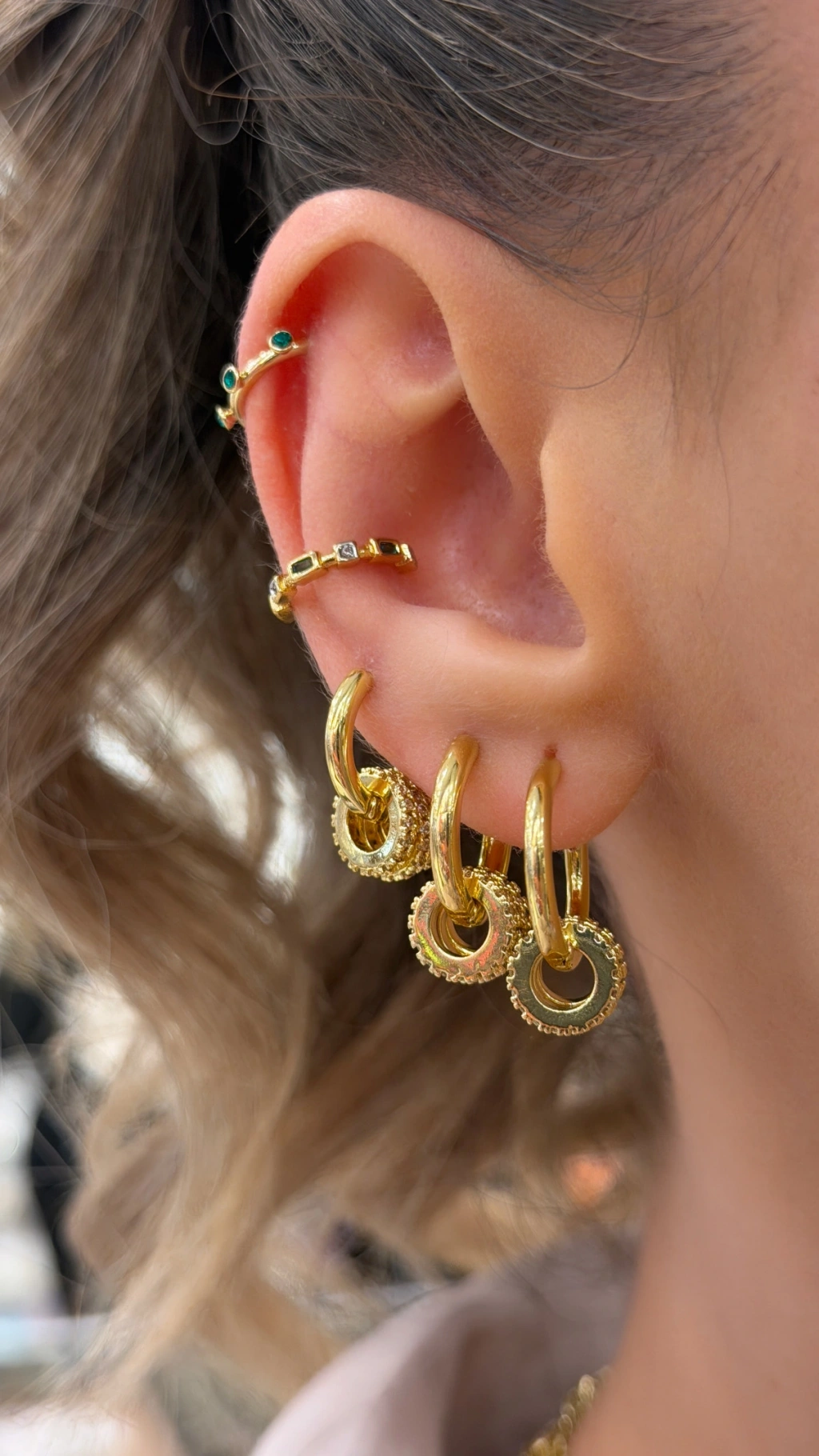 Sıralı Çiçek Detay Sıkmalı Kıkırdak Küpe