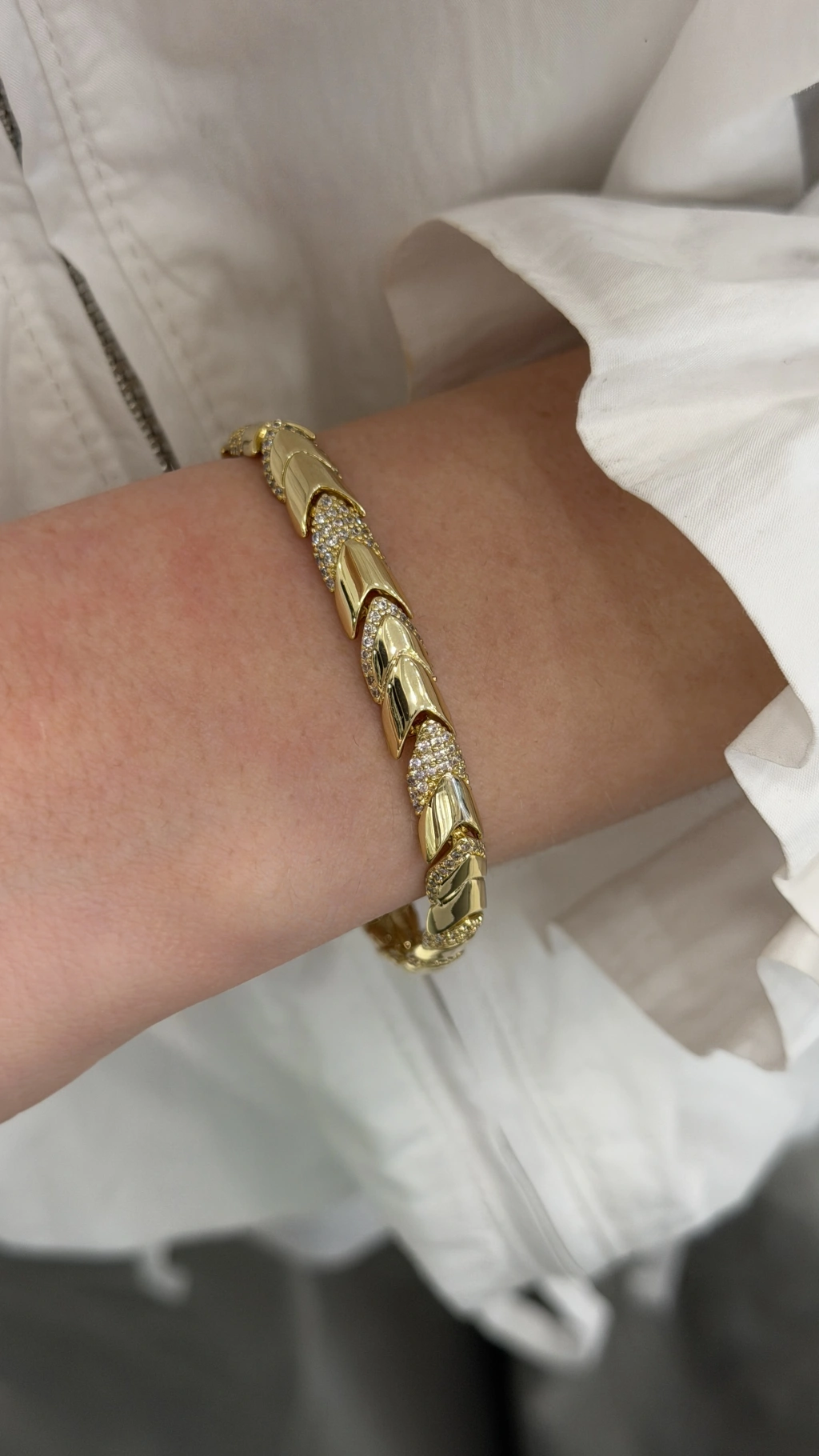 İki Yanı Taş İşleme Detay Gold Örme Bileklik(20 cm)