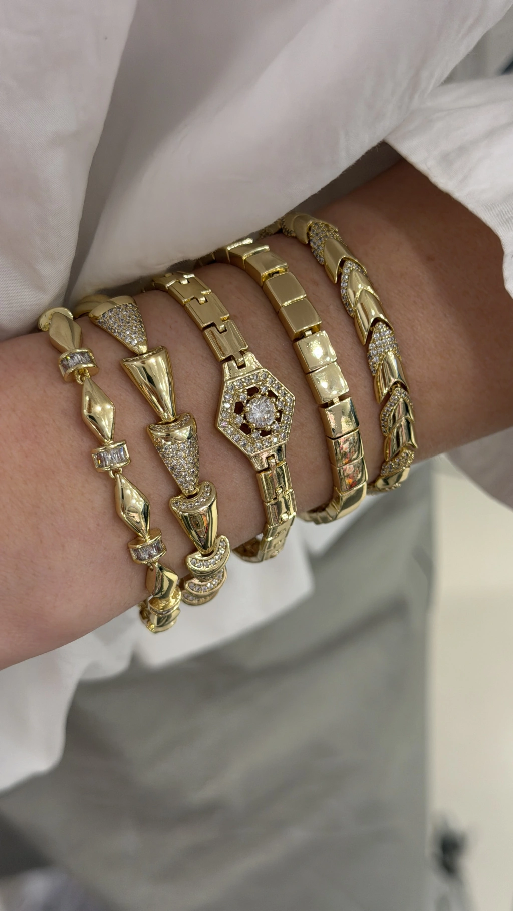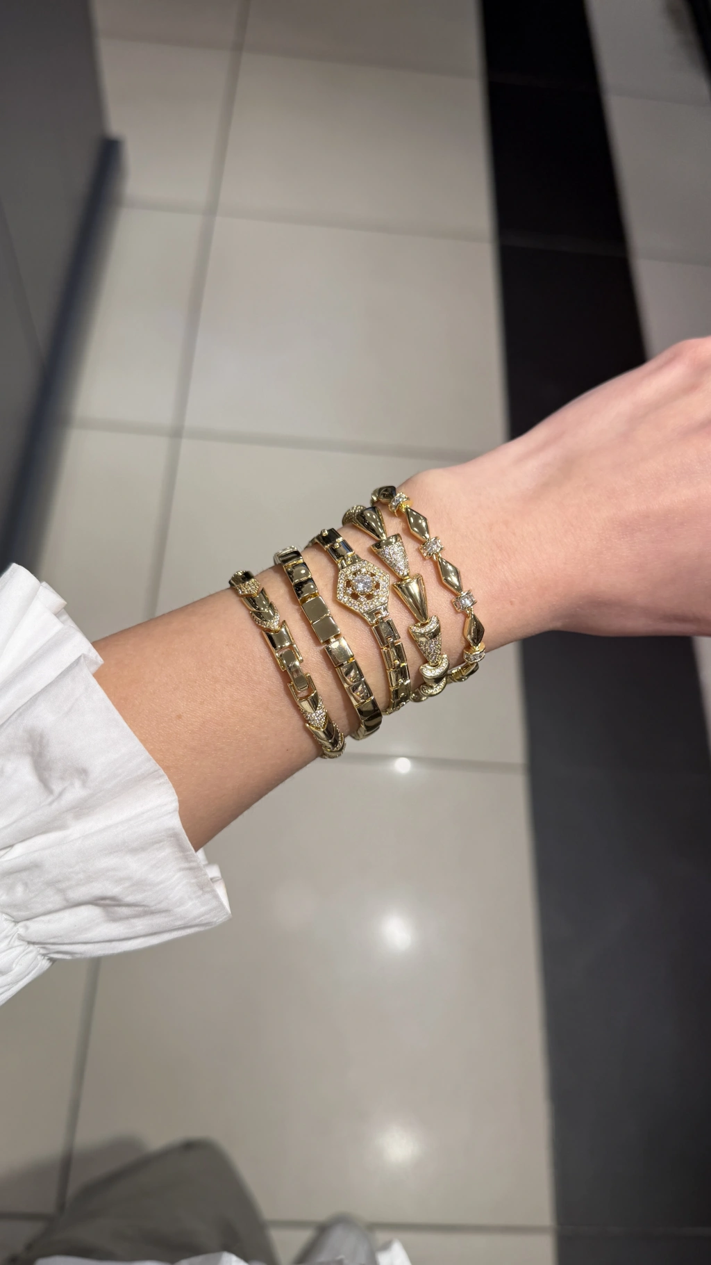 Bombeli Üçgen Plaka Taş Detay Bileklik (19 cm - Uzatma kısmı dahil)