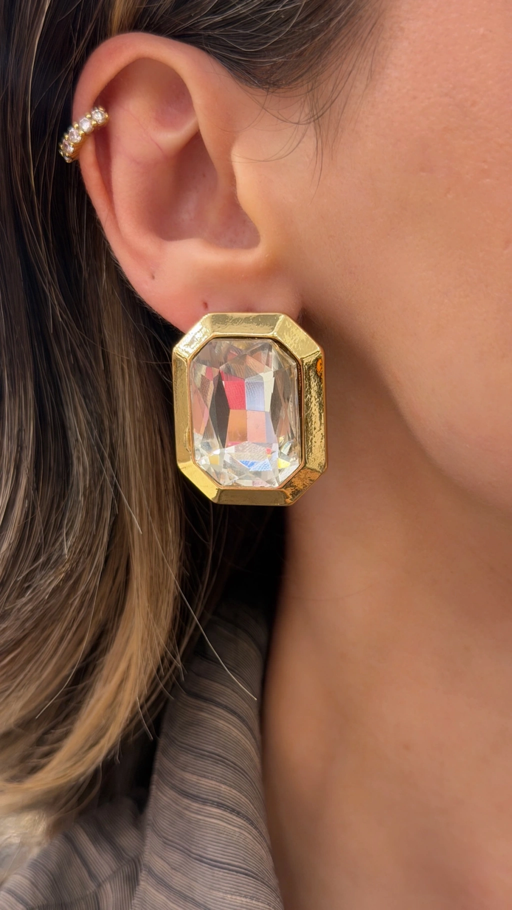 Kare Taşlı Büyük Metal Küpe