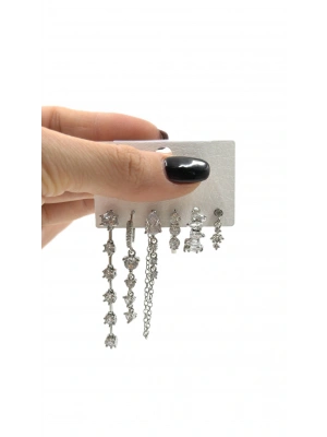 Gümüş Zirkon Taş Detay Üç Boy 3’lü Set Küpe