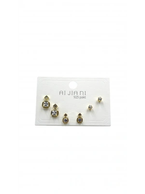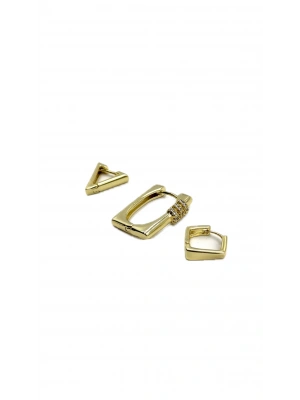 Üçgen Kare Dikdörtgen Plaka 3’lü Set Küpe