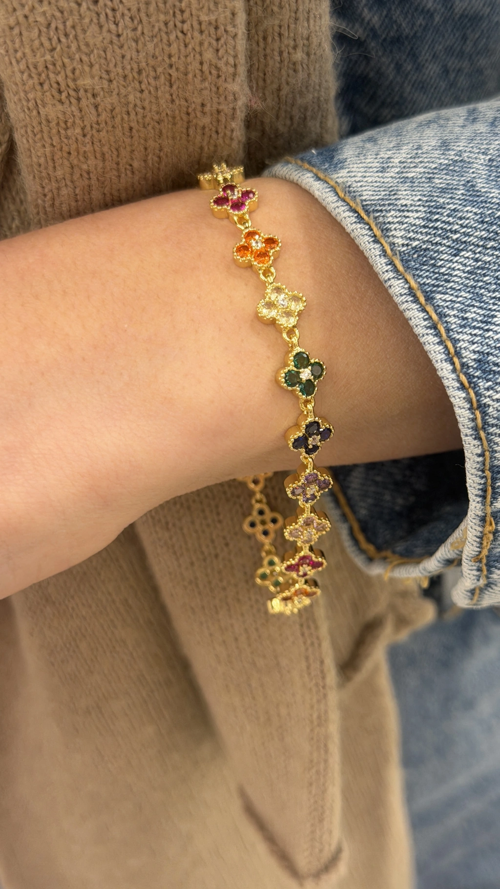 Sıralı Yonca Bileklik Gold (19cm)