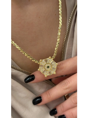 Altıgen Figür Taş İşleme Detay Kolye(46cm)