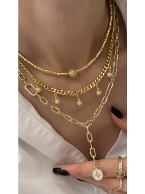 Sallantı Zincir Detay Top Figürlü 3’lü Kolye(40-44-50cm)