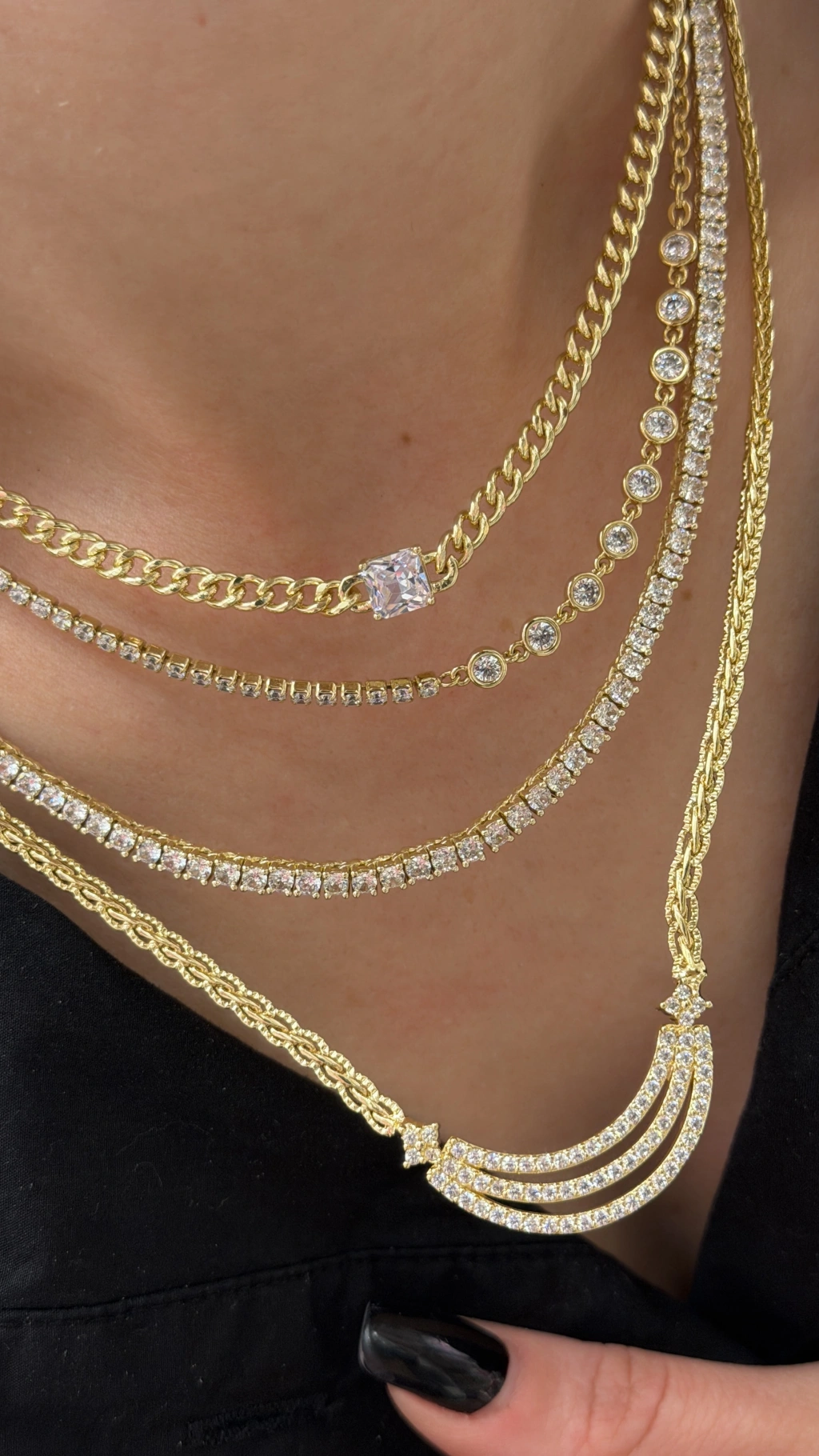 Ezme Zincir Küçük Taş Detay 3’lü Kolye Gümüş (39-44-49cm)