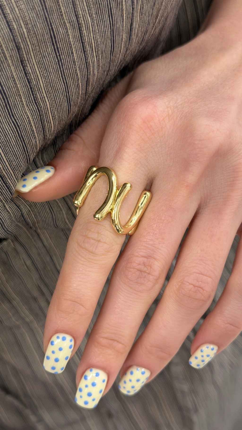 Halat Örgü Detay Yuvarlak Taş Yüzük