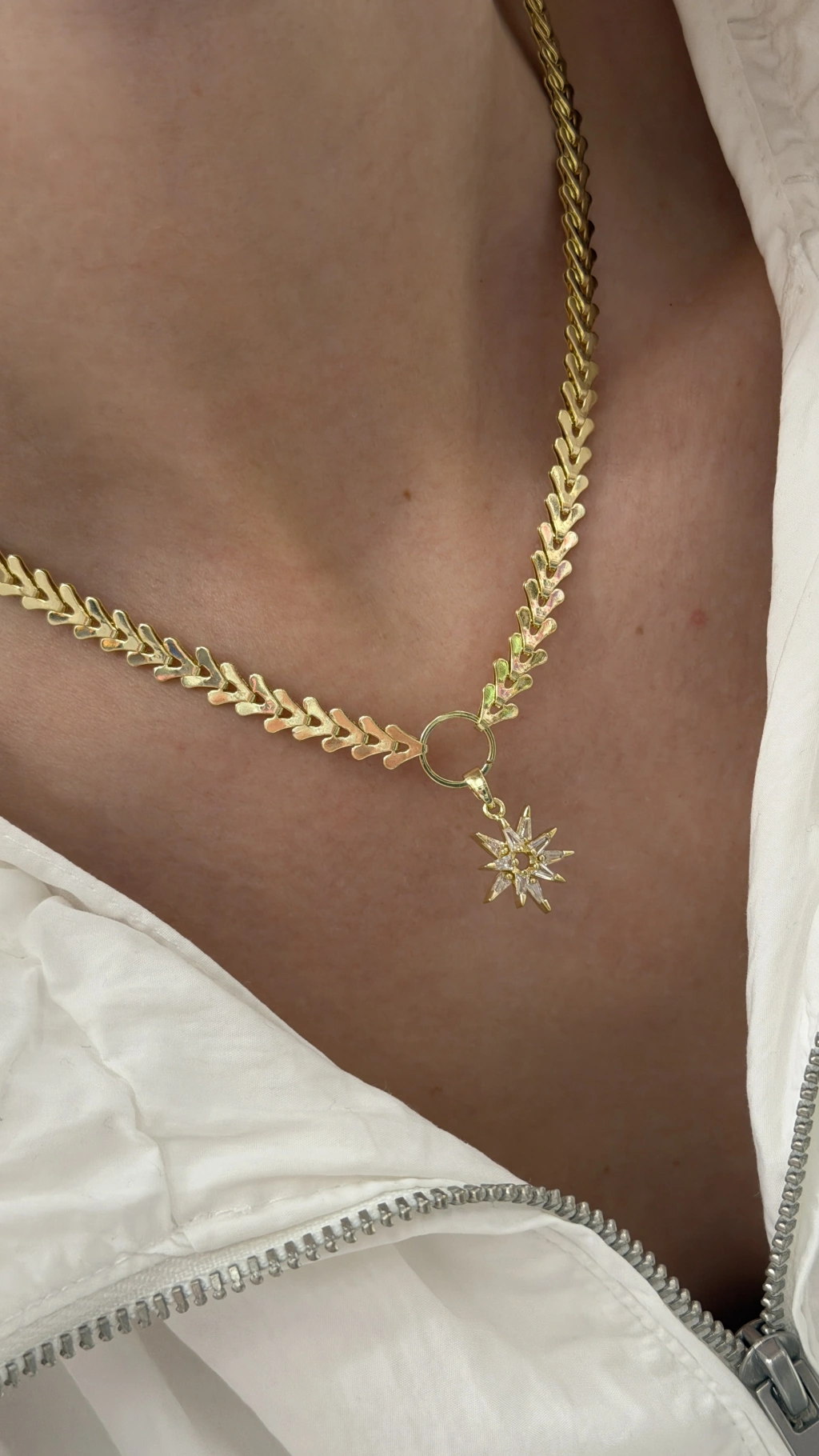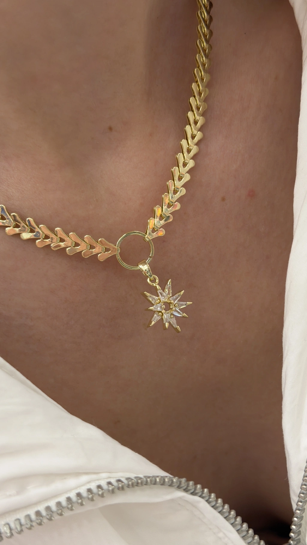 Sallanan Taş Detay Gold Kolye