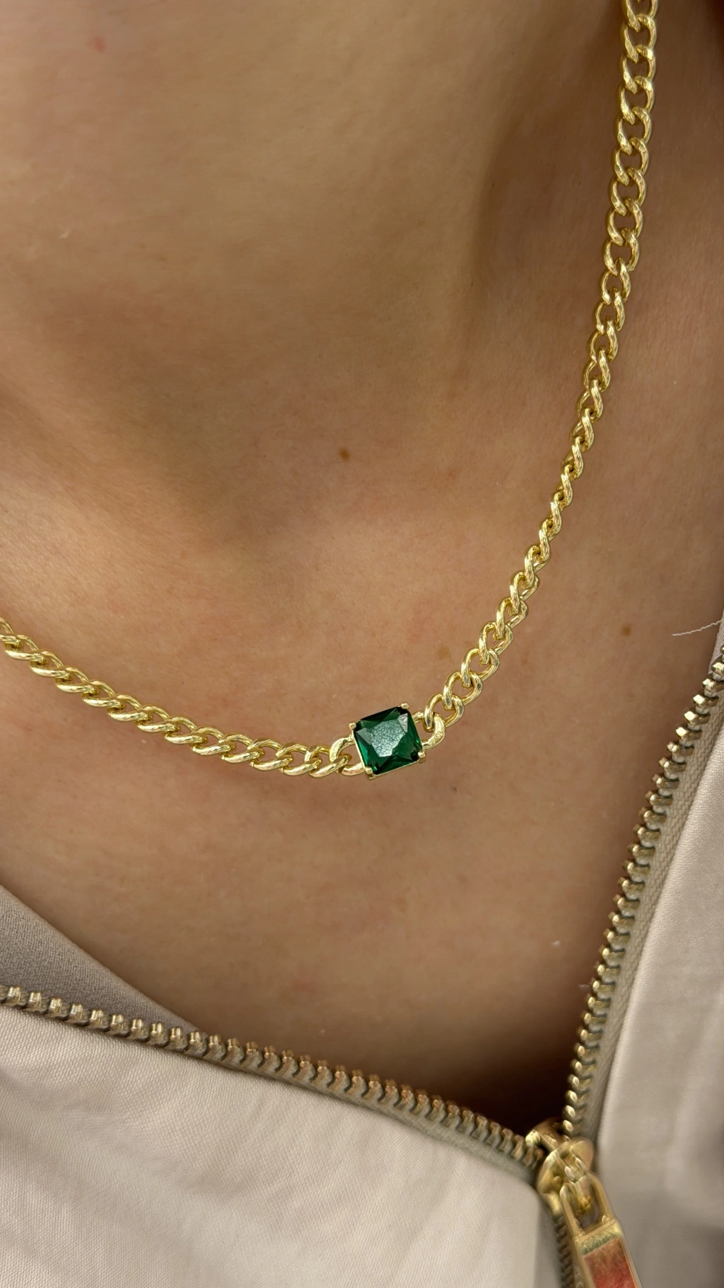 YEŞİL TEKTAŞ ZİNCİR KOLYE(39CM)
