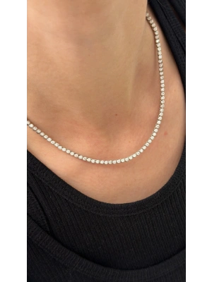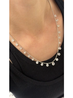 Gümüş Yuvarlak Taş Su Yolu Kolye(41 cm)