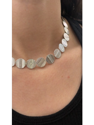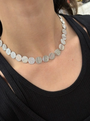 Yuvarlak Plaka Detay Gümüş Kolye (36 cm)