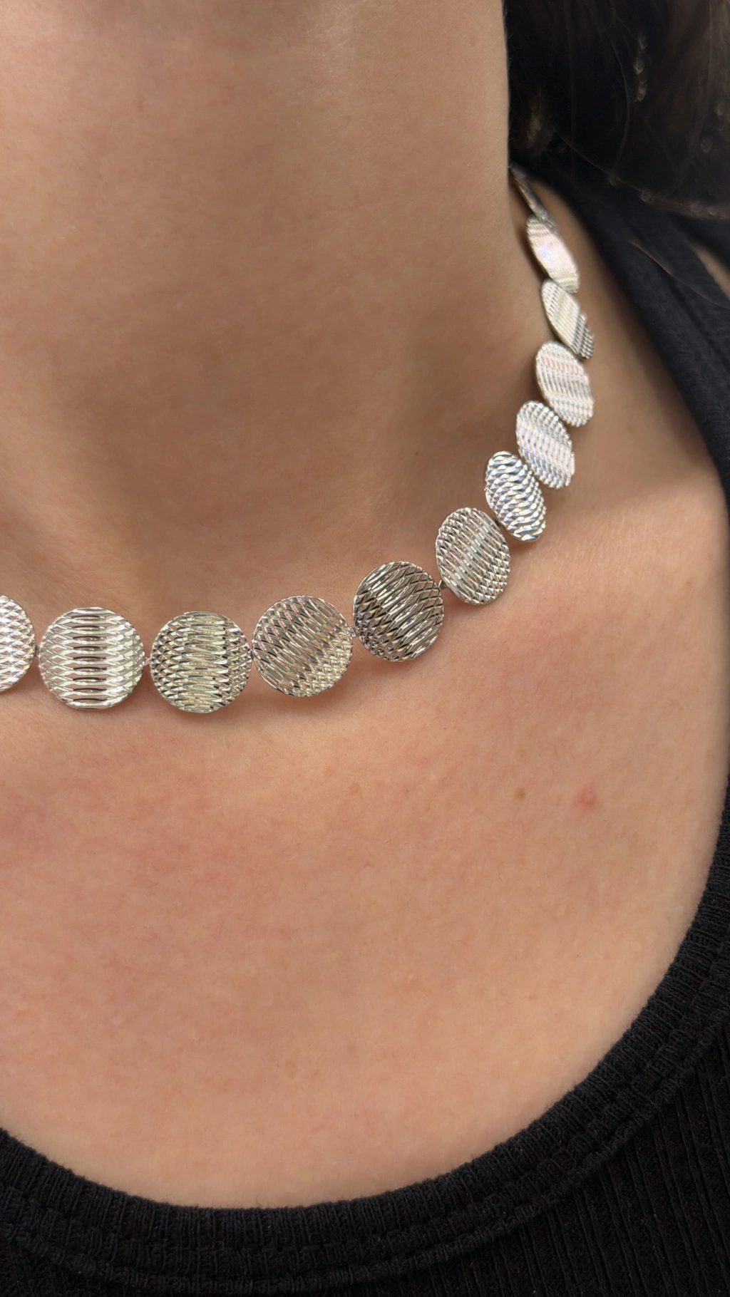YUVARLAK PLAKA DETAY GÜMÜŞ KOLYE (36 CM)