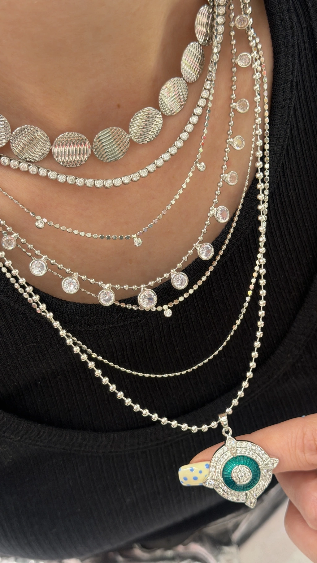 Gümüş Yuvarlak Taş Su Yolu Kolye(41 cm)