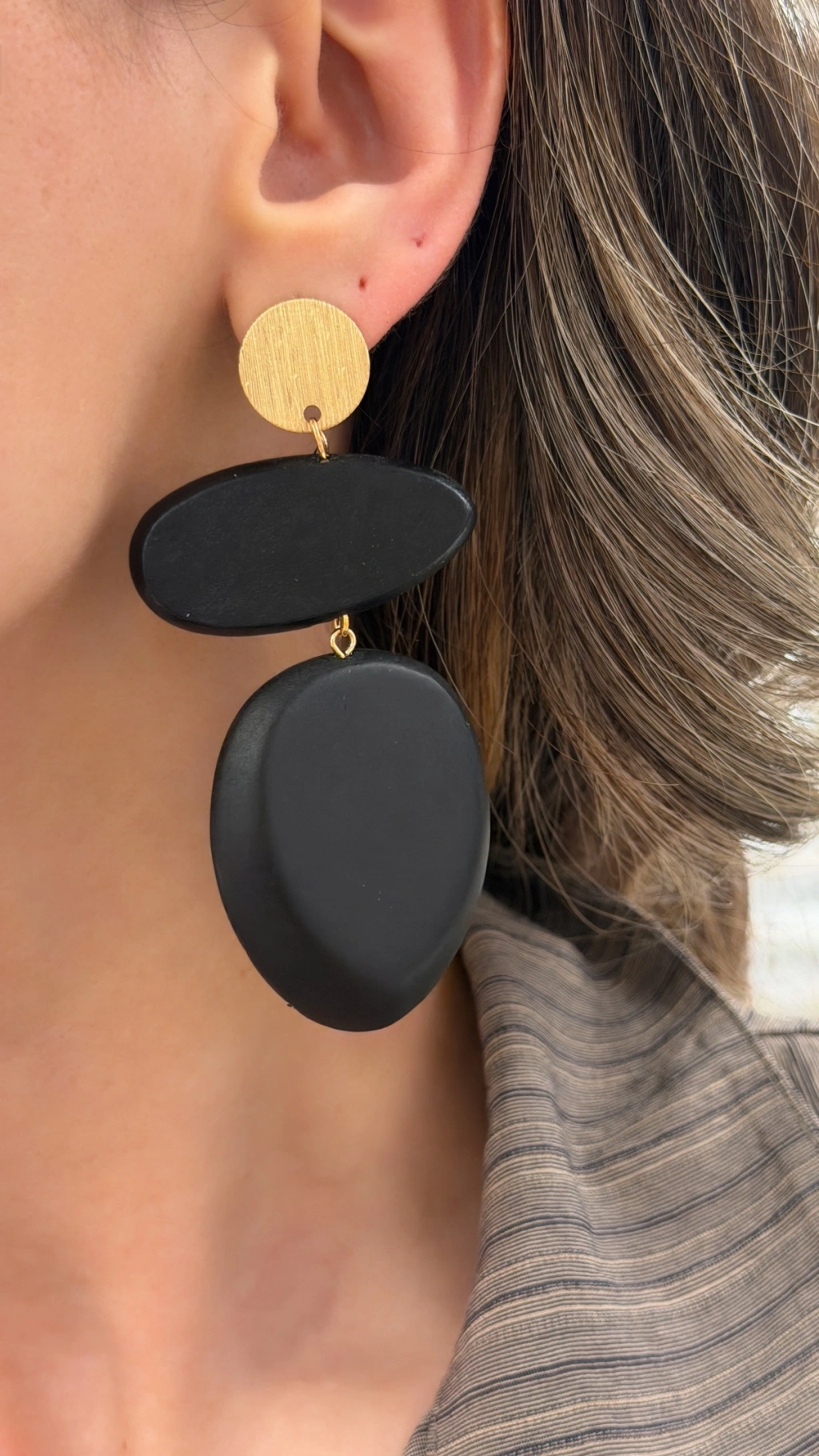 ZARA MODEL SİYAH TAHTA SALLANTILI BÜYÜK KÜPE